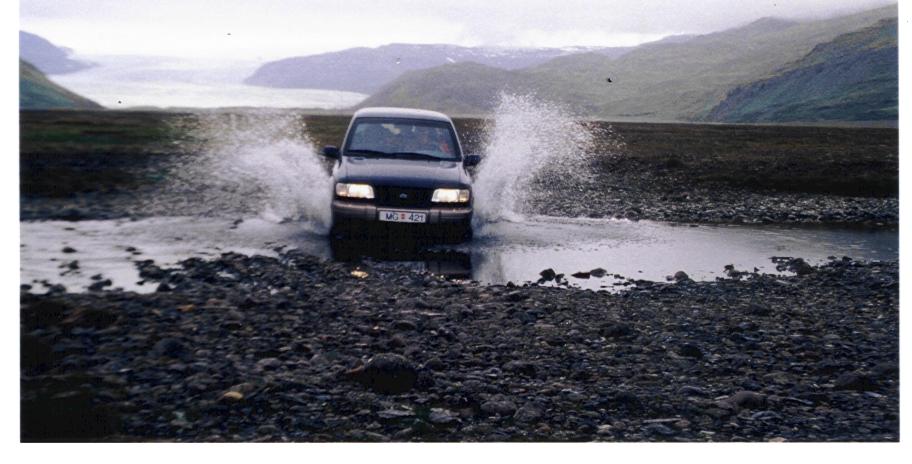 Die meist ganz gut ausgebaute Ringstraße sowie die Pisten in Küstennähe (sofern man einen 4x4, am besten höher gelegt hat) bieten eine komfortable Reisemöglichkeit. Doch dann will man eine Abkürzung nehmen, und schon steht man plötzlich vor einem Fluß und muss die ganze Strecke wieder zurück, oder man sieht eine Straße, schaut nicht genau auf die Karten, und plötzlich gibt es nur noch Piste, auf der man ganz und gar nicht gut vorwärts kommt. Doch wenigsten wurde es zu dieser Jahreszeit nicht mehr dunkel - da kann man sich bei der Tagesplanung oder seinen Ankunftszeiten in den Herbergen schon mal um ein paar Stunden verschätzen.
