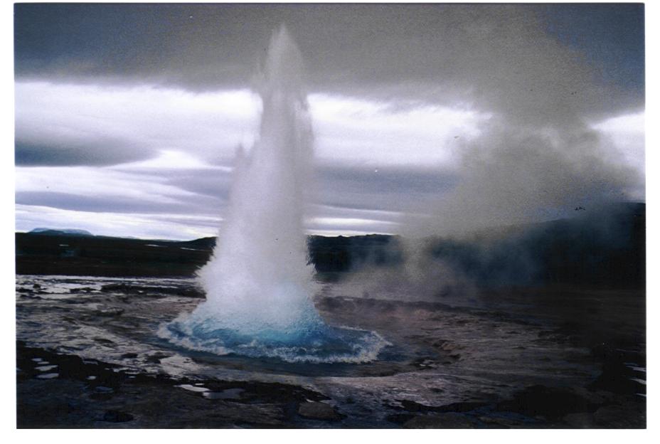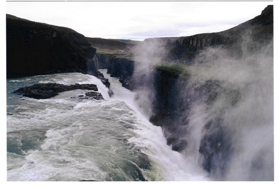 Unser Weg führte uns zunächst ein Stück ins Landesinnere, zum Gebiet des Pingvallavatn. Neben dem See und den geschichtlich wichtigen Orten - Details in jedem Reiseführer - sind hier der berühmte Geysir (allerdings nur mehr der kleinere, der alle 5-10 Min. ausbricht) zu bewundern und der Gulfoss, ein ausgedehnter Wasserfall mit großen Schluchten.