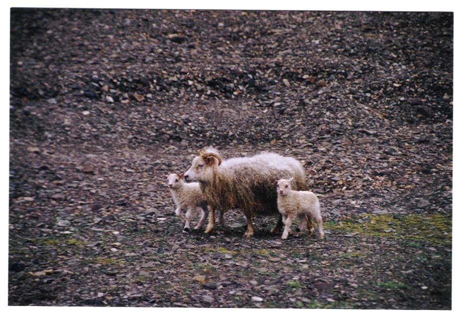 Was wäre Island ohne seine Schafe, überall, auf den Feldern und Weiden, im Straßengraben, entlang und auf der Straße, um und sogar in den Häusern. Zu dieser Zeit im Frühjahr haben sie ein paar Wochen alte Junge, die äusserst verschreckt davonhasten, wenn ein Auto kommt. Doch meist sind die Autofahrer sehr rücksichtsvoll, außerdem ist es sehr teuer, ein Schaf zu überfahren.